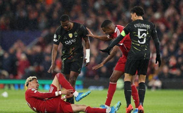 四月寒雨夜,安菲尔德球场笼罩在一片沉重的气氛中,这里上演的不仅是一场足球比赛的失利,更是一出令人扼腕叹息的悲剧。利物浦在欧冠四分之一决赛中,主客场均以失利告终,总比分零比四,黯然告别欧洲顶级赛事舞台,而更令人揪心的是,比赛中球队头号射手雨果埃基蒂克的意外重伤,给这支红军蒙上了一层挥之不去的阴影。